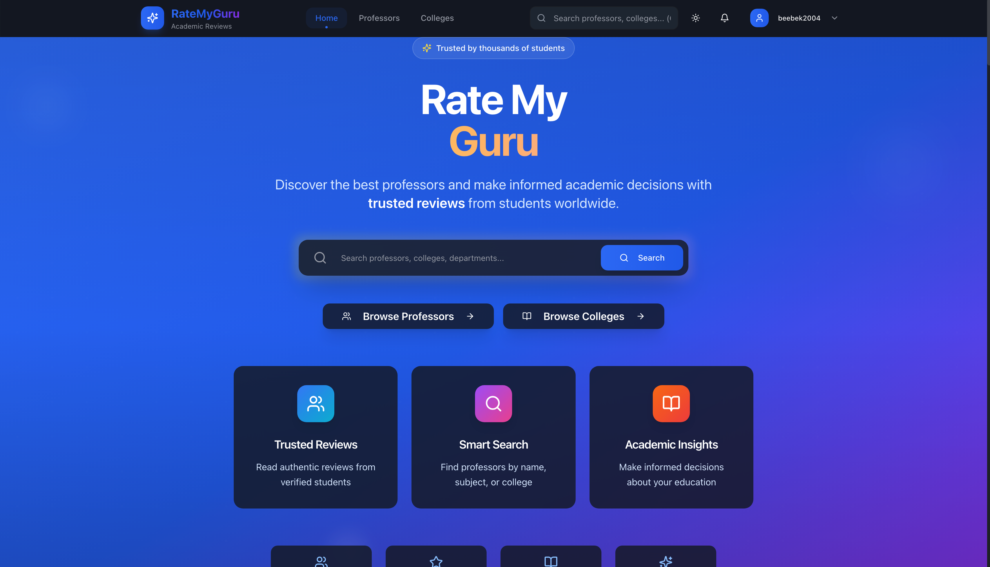 Platform for students to review and rate professors, colleges, and courses. Features analytics, top-rated highlights, and premium features via Stripe.